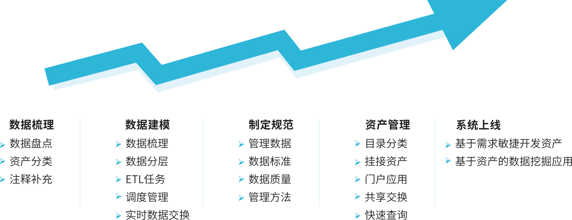 从数据资产盘点起步,召开数仓建模、标准体系建设,实现后续数据资产应用价值的提升