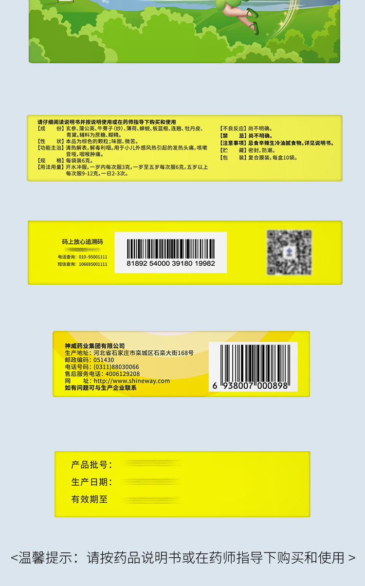 清热解表,解毒利咽。用于小儿外感风热引起的发热头痛,咳嗽音哑,咽喉肿痛。