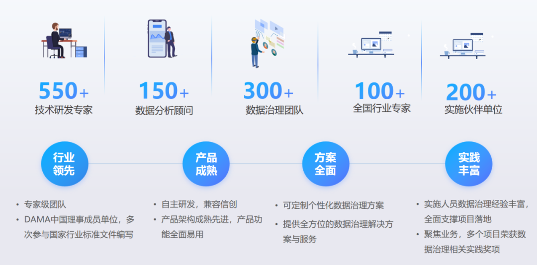 数据采集、治理、分析、应用等领先的数据治理工程解决方案,帮助政府及企业盘活数据,挖掘