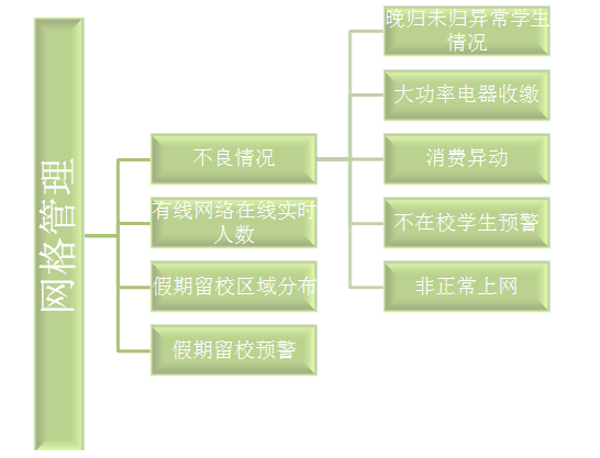 系统交付完成后,所有数据全部整合到系统中,系统协助网格管理员及校方领导时时观测到学生生活情况,并获取相关预警,以及学生学习成绩、奖学金、勤工俭学、图书馆数据等等相关数据情况,建立相关模型便可进行大数据分析,例如学生的日常生活学习习惯和成绩的关系等等。